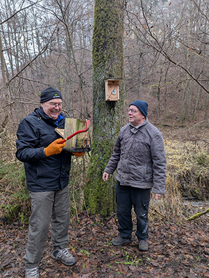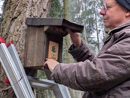 Eine Kooperation des Oberpfälzer Waldvereins in Neustadt (OWV) und der Naturschutzgruppe Weiden-Neustadt des Landesbundes für Vogel- und Naturschutz (LBV) bringt auch den Piepmätzen an Neustadts Bächlein und Flüssen eine kleine Bescherung: 14 neue oder frisch restaurierte Nistkästen wurden montiert, die im Winter von Vögeln und Mäusen auch gerne als trockene Unterstände genutzt werden. Dazu gibt es am OWV-Rastplatz unter der Mühlbergkirche wieder eine frisch gezimmerte Futterstelle. Möglich wurde das durch eine erneute Kooperation der Verbände. Der LBV hat die Nistkästen fachgerecht gebaut, d.h. groß und dick genug, aus Holz ohne Verleimung, mit passender Lockgröße, leicht leerbar und so tief, dass die kleinen Vögelchen auch möglichst geschützt vor den langen Fingern vor Marder und Co sind. Gefertigt wurden die Kästen von Gerhard Reichl, Hans Heinrich oder von Aktiven in einem der vielen Workshops der LBV-Naturschutzgruppe Weiden/Neustadt. Montiert wurden sie gemeinsam und sie hängen da, wo der OWV schon seit Jahrzehnten aktiv ist. Weitere Nistkästen an der Floß sind gerade abmontiert und zur Reparatur. Vor der neuen Nistsaison wird es aber auch dort mehr Wohnraum für Meisen, Kleiber, Baumläufer und Co geben.