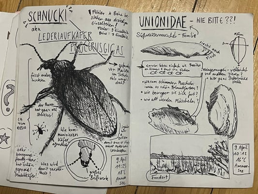 Am Ende waren alle unglaublich dankbar, dass Ella Krapf den Kurs „Nature Journaling“, den sie im Rahmen ihres freiwilligen ökologischen Jahres im Nationalpark Bayerischer Wald entwickelt hat, endlich nicht nur dort weiterführt, sondern auch nach Weiden gebracht hat. Da sollte er öfter zum Einsatz kommen. Man würde es den zukünftigen Kursteilnehmern gönnen. (Text und Fotos: Verena Bauer, Zeichnungen: Ella Krapf und Teilnehmer)