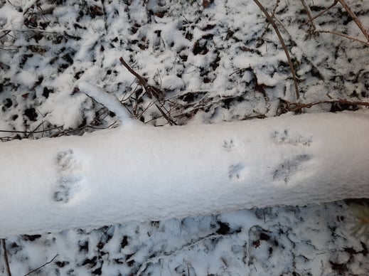 Tierspuren sind mehr als nur die Abdrücke im Schnee, die wir auf Spaziergängen in der winterlichen Landschaft so gerne erforschen und auch sie muss man lesen können. Denn sie verraten mehr als nur die Tierart über den Pfoten, z.B. können auch Geschwindigkeit, Laufart, Begegnungen mit anderen Tieren spannende Erkenntnisse für einen Spurensucher sein. Der Blick nach unten lohnt tatsächlich oft, nicht nur für Abdrücke, sondern auch für Fraßspuren, Losungen und vieles mehr. Aber auch in der Horizontalen, z.B. an Fraßspuren an Baumrinden und mit den Augen nach oben gibt es viel zu entdecken, wie verlassene Nester, die in den Baumspitzen im laubfreien Winter besonders deutlich zu sehen sind. Einmal dafür geschult, ist der Wald ein spannender Ort, der der geübten Spurenleserin so einiges zuflüstert, was andere nicht sehen. Und dabei gibt es ohne Schnee anderes, aber nicht weniger zu sehen als mit.