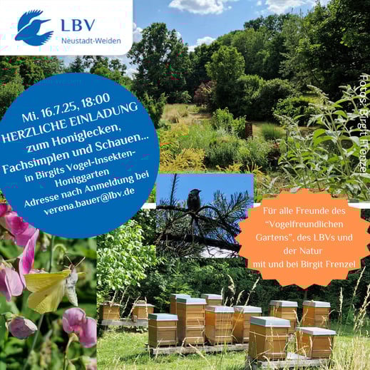 Aber dann gibt es für alle, die sich dieses Jahr und in den vergangenen Jahren um die LBV-Auszeichnung „Vogelfreundlicher Garten“ bemüht haben das versprochene Honigfestchen, bei dem sich Garten- und Tierliebhaber honigschleckend über schöne Beobachtungen in ihren Gärten austauschen können.