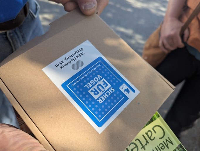 Und ganz in der Mitte des Standes konnten unsere Besucherinnen und Besucher ein kleines Fenster betrachten – nicht zum Draufklopfen und „Hallo“ sagen, sondern um nicht dagegen zu fliegen. Jährlich stirbt eine enorme Anzahl an Vögeln durch die Kollision mit Glasscheiben an Gebäuden, Bushaltestellen und anderen Einrichtungen, da sie diese nicht als Barriere wahrnehmen. Der LBV informierte über die verschiedenen Möglichkeiten, Fenster für Vögel ungefährlicher zu machen. Das Fenster am Stand wurde zum Beispiel mit einem speziellen Punktmuster beklebt, das für Vögel gut sichtbar ist – und dabei trotzdem fast dekorativ wirkt.