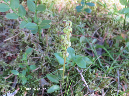 (13.07.2020) Es ist eine eher karge Pflanze, für die sich Dolf Küblböck, Susanne Schwab und Verena Bauer auf den Weg in den Wald gemacht haben: Das Wintergrün in zwei verschiedenen Arten. Seinen Namen hat es verdient, weil es im Winter seine Blätter nicht einzieht und daher das ganze Jahr zu sehen ist. Es wächst auf feuchten, aber kargen Waldbögen und als es hier im Kreisgebiet entdeckt worden ist, wurde es von der Ortsgruppe Weiherhammer begeistert begrüßt. Denn das Wintergrün ist sehr selten geworden.
