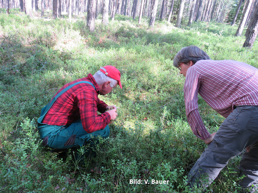 Dabei ist es ein "geselliges Kraut", das auch in diesem Wald in kleinen Grüppchen wächst. Gegen das im Vergleich riesige Schwarzbeerkraut hätte es aber vorerst kaum eine Chance. Deshalb wurden heute mit Sense, Hand und Rechen kleine Inseln im Schwarzbeermeer geschaffen, so dass für das auch Birnkraut genannte Gewächst etwas Platz zum Atmen bleibt.