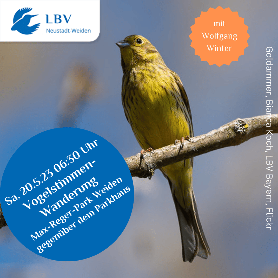Unter fachkundiger Führung von Wolfgang Winter lernen Naturliebhaber in den Wiesen entlang der Haidenaab zahlreiche gefiederte Sänger kennen. Der etwas anderen Vatertagswanderung schließt sich ein gemeinsames Frühstück an. Anmeldung und nähere Infos unter der Mail-Adresse verena.bauer@lbv.de.