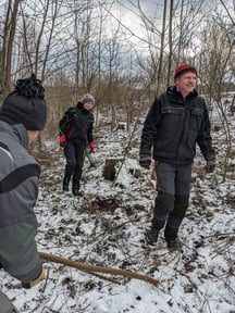 90 Minuten abwechselnd den Blick konzentriert auf den Boden konzentrieren und dann gespannt den Geschichten hinter den zunächst unscheinbaren Auffälligkeiten lauschen - das wollten am letzten Sonntag der Weihnachtsferien über 50 Besucher:innen der Familien-Tierspurenwanderung mit Wolfgang Winter.