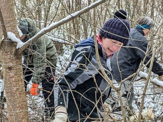 Heckenbewohner wie Igel und Neuntöter wird es freuen. Und in großer Gruppe geht die Arbeit auch leicht von der Hand.