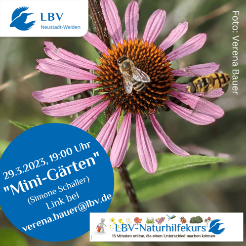 Wer keinen großen Garten hat, unterschätzt oft, was man auf kleinsten Flächen wie Balkon, Blumenkasten, kleinen begrünbaren Quadratmetern ums Haus, in Wasser- und Pflanzenkübeln für die Artenvielfalt erreichen kann. Aber aus der Perspektive vieler Gartenbewohner müssen viele dieser Kleinstflächen geradezu riesig erscheinen ... und wenn sie leer, tot und unergiebig sind, auch einfach kahl. Denn eine Schwebfliege ist gerade einmal 7mm lang, ein Marienkäfer kann je nach Art noch viel kleiner sein. Vergleichsweise groß wirkende Insekten wie unsere heimischen Schmetterlingen bringen gerade einmal um die 100 mg auf die Waage. Für sie können wir viel tun! Und wer Lebensraum für Insekten schafft, hilft über die komplexen Zusammenhänge im Ökosystem auch größeren Tiere wie Fledermäusen, Vögeln, Igeln und viele mehr. Was auf Kleinstflächen möglich ist, wird Simone Schaller an vielen Beispielen zeigen. Freuen Sie sich auf bunte Vielfalt, die nicht nur Ihnen gefällt, sondern bei geschickter Pflanzenauswahl auch vielen anderen Lebewesen rund um Ihren Wohnbereich nützt.