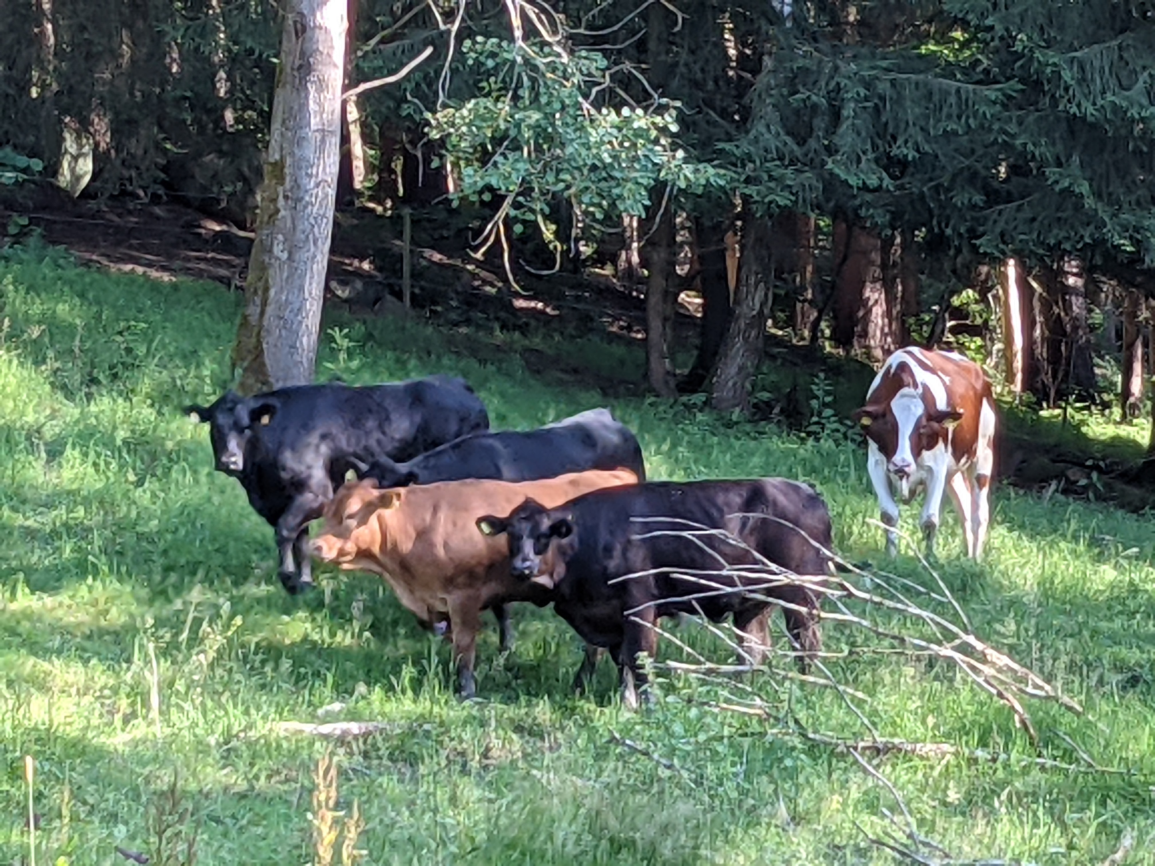 Und wer einmal das Privileg hatte, mit Teresa oder ihrem Mann durch das unwegige, schwer überschaubare Gelände der Fläche zu streifen, der weiß, dass das alles auch dauern kann, denn Büsche, Sträucher, kleine Waldanteile bieten den Rindern viel Raum zum Verstecken und nicht jeder Tag ist einer, an denen die Rinder von sich aus zum Kuscheln am Bauwagen mit den Geräten vorbeikommen.