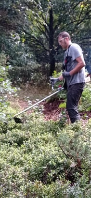 auch etwas Schützenhilfe. Angeleitet von Philipp Glaab rückten am letzten Augustwochenende 2023 Susanne S., Albert H und Christian B. mit Sense, Handschuhen und Freischneider aus und gaben den Heidekraut wieder etwas mehr Luft zum Atmen. Es hat wieder eine Chance. Konkurrenzfrei wird das Leben auf diesem kleinen idyllischen Fleckchen allerdings nicht bleiben.