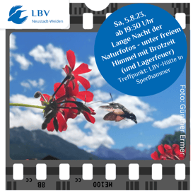 Es gibt in ganz Deutschland die "Lange Nacht" der Museen, der Astronomie oder der Wissenschaften. Dazu braucht es ein Museum, eine Sternwarte oder eine ganze Hochschule. Und es gibt eine "Lange Nacht der Naturfotos" in Sperlhammer. Dazu braucht die LBV-Ortsgruppe Neustadt-Weiden nur ihr kleines Grundstück, eine improvisierte Leinwand und einen Laptop mit Beamer.