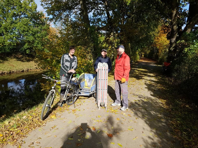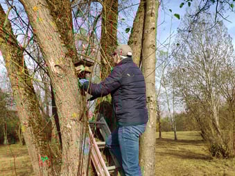 Für manche sind 4 Meter schon schwindelnde Höhen, aber da leben viele Vögel am sichersten und liebsten. Deshalb scheuten die Aktiven der LBV Naturschutzgruppe Weiden/Neustadt auch die wackelige Leiter nicht und rückten in den vergangenen Wochen mehrfach mit vollbepacktem Fahrradanhänger aus, um den geliebten gefiederten Freunden am Flutkanal beste Bedingungen für die nächste Saison zu bieten. Das Säubern von Nistkästen ist nämlich enorm wichtig. Blutsaugende Schädlinge wie Zecken und Flöhe müssen raus, damit die Vögel sich im nächsten Jahr ungeschwächt der Brut widmen können. Mit Wespen- und Hornissennestern vollgekleisterte Brutplätze müssen nach Abzug der Insekten wieder freigelegt werden, damit Platz ist für neue Bewohner, und die Überwinterungsplätze sollte wenigstens nicht nur von Mäusen belegt sein.