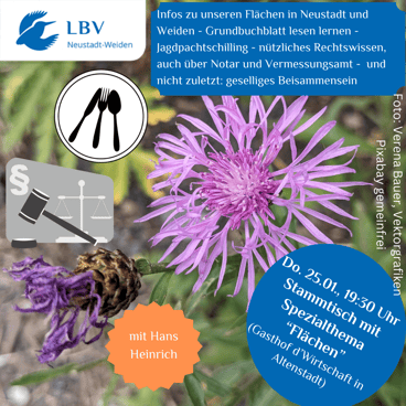 Deshalb lädt der LBV am kommenden Donnerstag zu einer gemütlichen Gesprächsrunde in d'Wirtschaft ein, wo Hans Heinrich, der sich beruflich Jahrzehnte lang mit solchen und ähnlichen Rechtsfragen und Naturschutz auf Flächen beschäftigt hat, zum Gespräch.